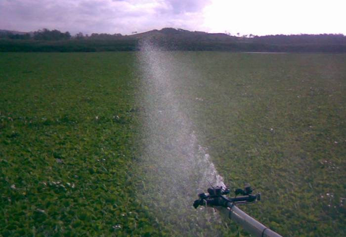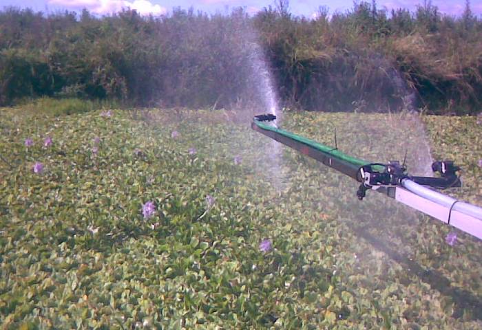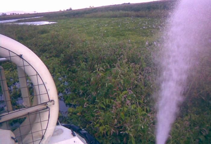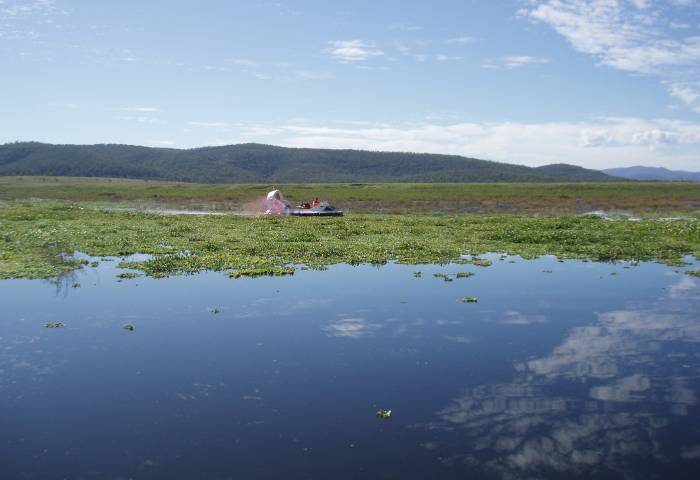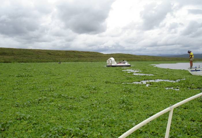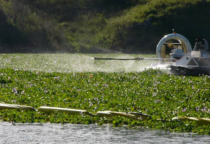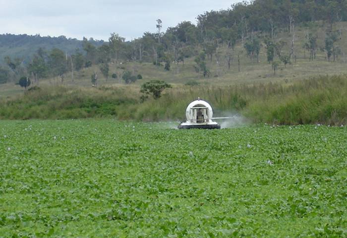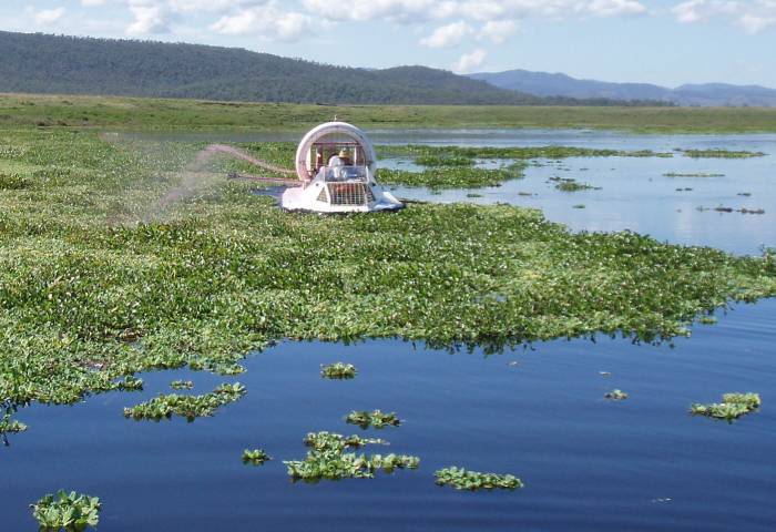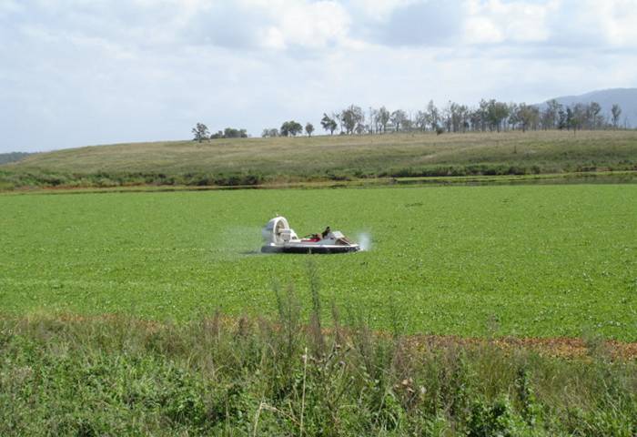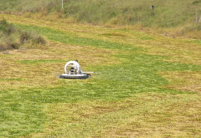 Despite the size of the job the HESA hovercraft easily travels over the menacing weed