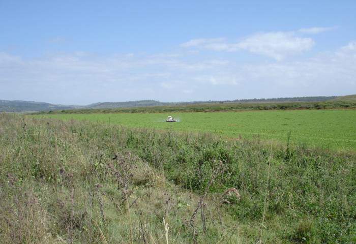 Areas of previously sprayed dying weed ready for final touch up